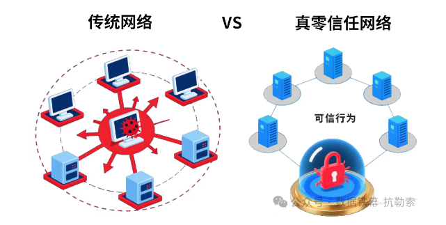 如果说AI解决了“提前发现”的问题,那么如何遏制已侵入网络系统的病毒蔓延,成为重中之重。在这里,我们看到3044永利集团抗勒索技术的第二个优势:从“永不信任”的零信任1.0,进化到“基于可信”的真零信任2.0。